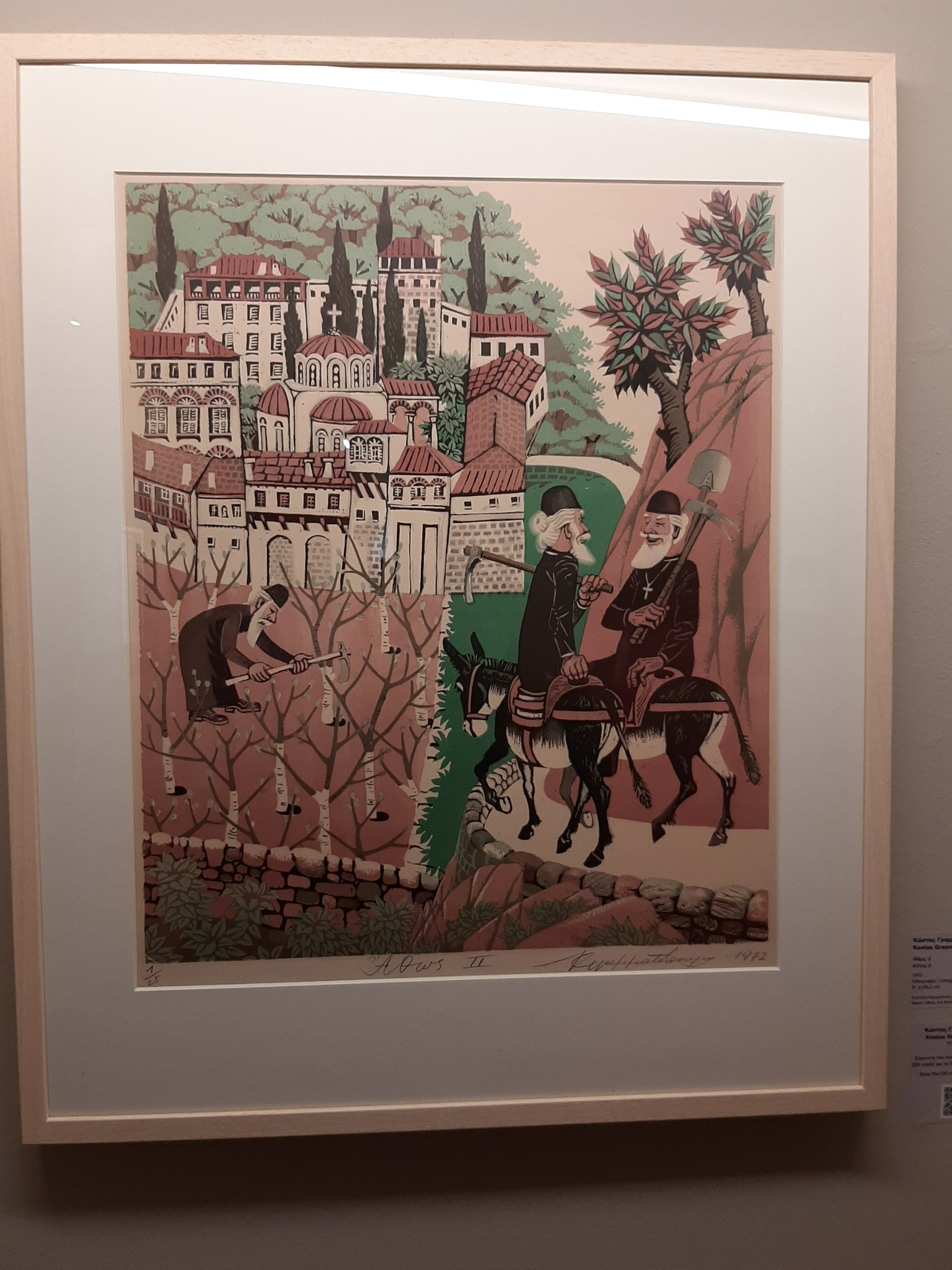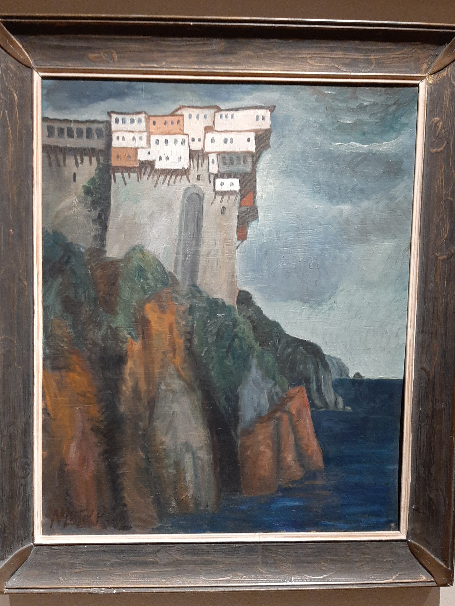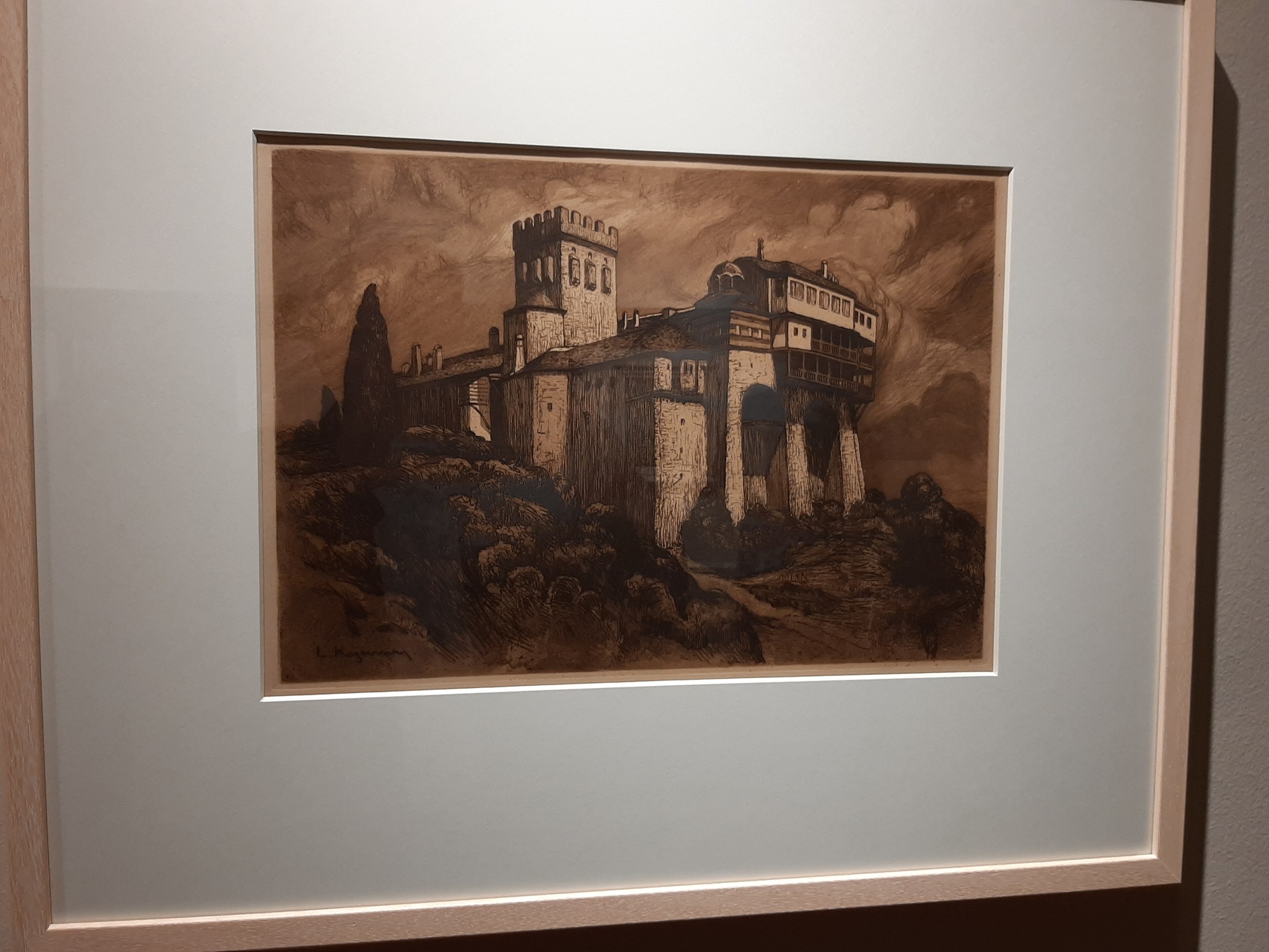 Στον εκθεσιακό χώρο λοιπόν της Αγιορείτικης Εστίας – Κτήριο Νεδέλκου ξεναγηθήκαμε εμείς σήμερα, στην έκθεση «Εικαστικό ταξίδι στο Άγιον Όρος» με έργα σπουδαίων Ελλήνων εικαστικών της περιόδου 1922-1995, όπως των : Σπύρου Παπαλουκά, Λυκούργου Κογεβίνα, Πάνου Παπανάκου, Νίκου Γ. Πεντζίκη, Πολύκλειτου Ρέγκου, Γεώργιου Μόσχου, Γιώργου Δούκα, Χρήστου Δέλλιου, Νίκου Φωτάκι, Ιωάννη Βράνου, Νίκου Βακαλόπουλου, Κλειώς Νάτση, Ευθύμιου Παπαδημητρίου, Νίκου Σαχίνη, Κώστα Γραμματόπουλου, Γιώργου Βελισσαρίδη, Πάνου Βαλσαμάκη και Γιώργου Κοσμαδόπουλου.