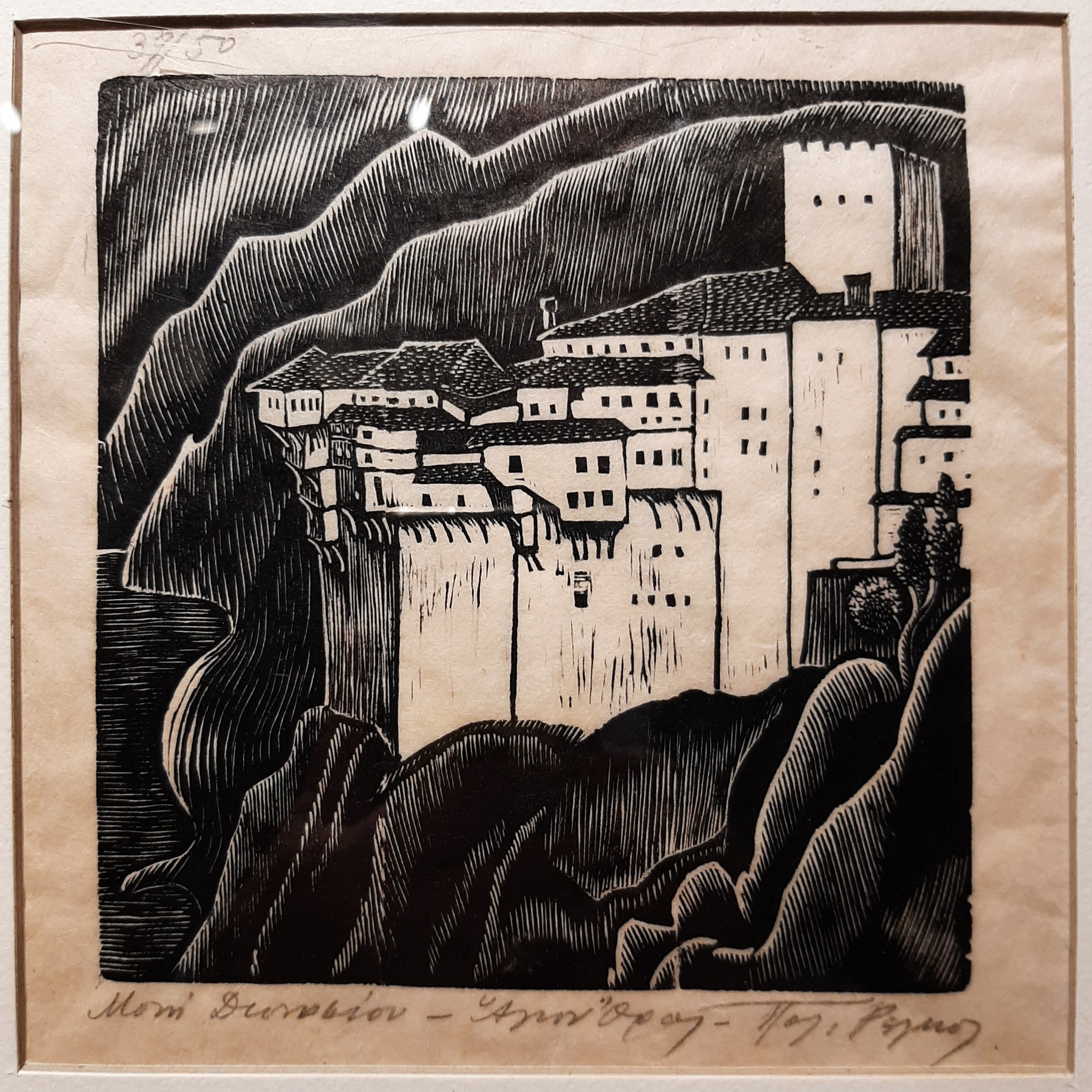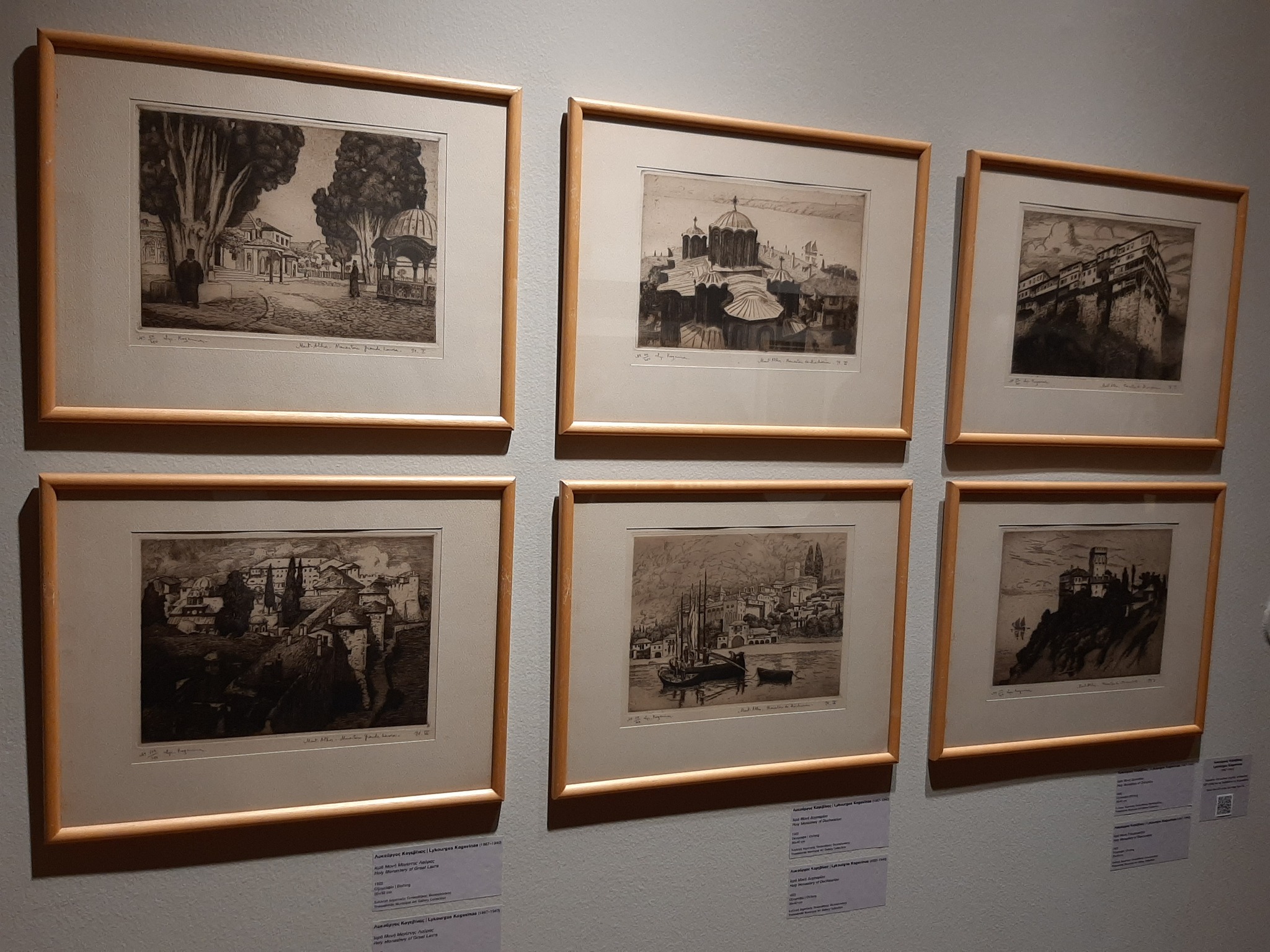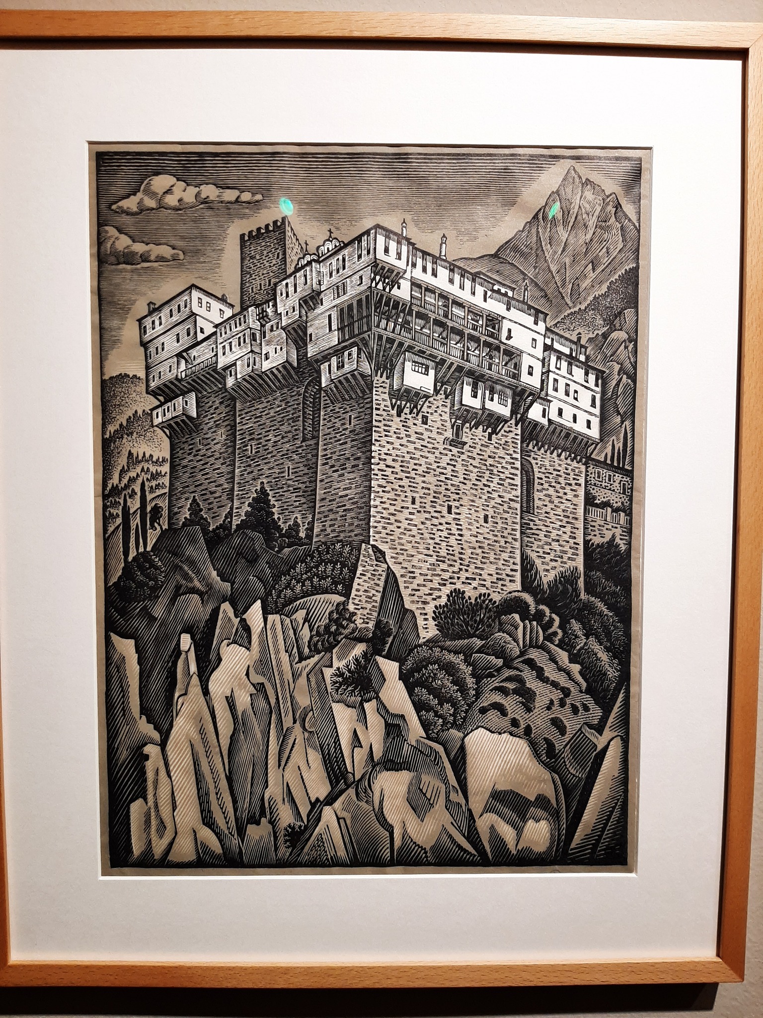 Στον εκθεσιακό χώρο λοιπόν της Αγιορείτικης Εστίας – Κτήριο Νεδέλκου ξεναγηθήκαμε εμείς σήμερα, στην έκθεση «Εικαστικό ταξίδι στο Άγιον Όρος» με έργα σπουδαίων Ελλήνων εικαστικών της περιόδου 1922-1995, όπως των : Σπύρου Παπαλουκά, Λυκούργου Κογεβίνα, Πάνου Παπανάκου, Νίκου Γ. Πεντζίκη, Πολύκλειτου Ρέγκου, Γεώργιου Μόσχου, Γιώργου Δούκα, Χρήστου Δέλλιου, Νίκου Φωτάκι, Ιωάννη Βράνου, Νίκου Βακαλόπουλου, Κλειώς Νάτση, Ευθύμιου Παπαδημητρίου, Νίκου Σαχίνη, Κώστα Γραμματόπουλου, Γιώργου Βελισσαρίδη, Πάνου Βαλσαμάκη και Γιώργου Κοσμαδόπουλου.