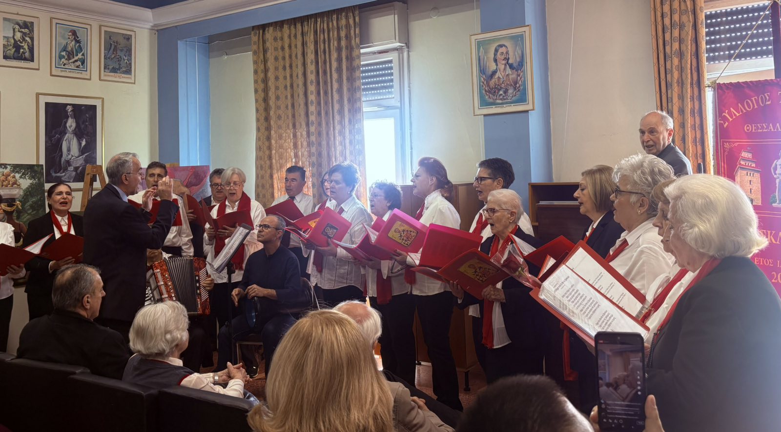 Η όμορφη επετειακή αυτή εκδήλωση, έκλεισε όμορφα και μελωδικά με την χορωδία του Ι.Ν. του Αγίου Ελευθερίου Ντεπώ, με μαέστρο τον κο Ασημήνα Ευάγγελο, ενώ περιμετρικά της αίθουσας είχαμε την ευκαιρία να θαυμάσουμε την έκθεση ζωγραφικής και βυζαντινής αγιογραφίας του Συλλόγου Ζωγράφων Θεσσαλονίκης & Β. Ελλάδας.
