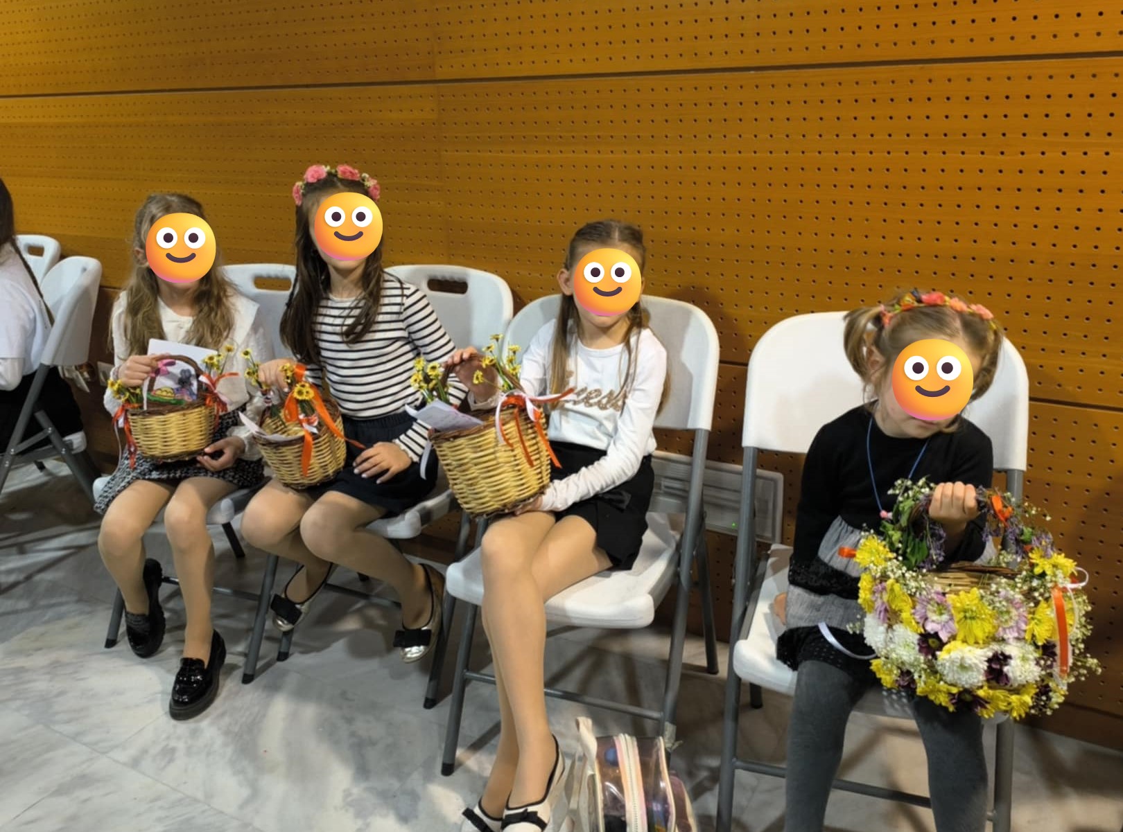 Οι μικρές «Λαζαρίνες» μας, όμορφα ντυμένες και με τα στολισμένα με κορδέλες και λουλούδια καλαθάκια τους, μπήκαν στην αίθουσα τραγουδώντας ένα Λαζαροτράγουδο, δίνοντας έτσι το νόημα της ομιλίας που θα ακολουθούσε και αποσπώντας πολλά χειροκροτήματα για την όμορφη εμφάνισή τους και το τραγούδι τους, ως μία αναπαράσταση του εθίμου των Λαζαρίνων, κατά το οποίο τα κορίτσια – κύρια των τάξεων του Δημοτικού – πήγαιναν από σπίτι σε σπίτι τραγουδώντας Λαζαροτράγουδα και οι νοικοκυρές των σπιτιών, τα κερνούσαν διάφορα καλούδια όπως, σύκα, καρύδια, ξυλοκέρατα, καραμέλες και βεβαίως Λαζαροκούλουρα !!!
