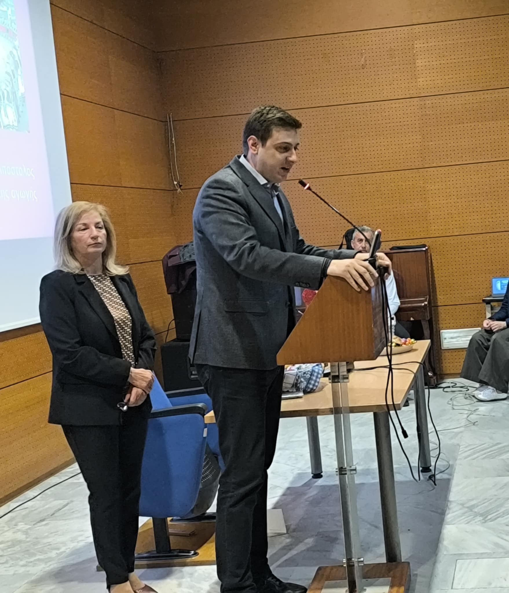 Αλλά και τον τεχνικό της αίθουσας κο Δημήτρη Αηδονόπουλο που βοήθησε στην ηχητική κάλυψη αλλά και στην προβολή των διαφανειών της παρουσίασης του ομιλητή μας.